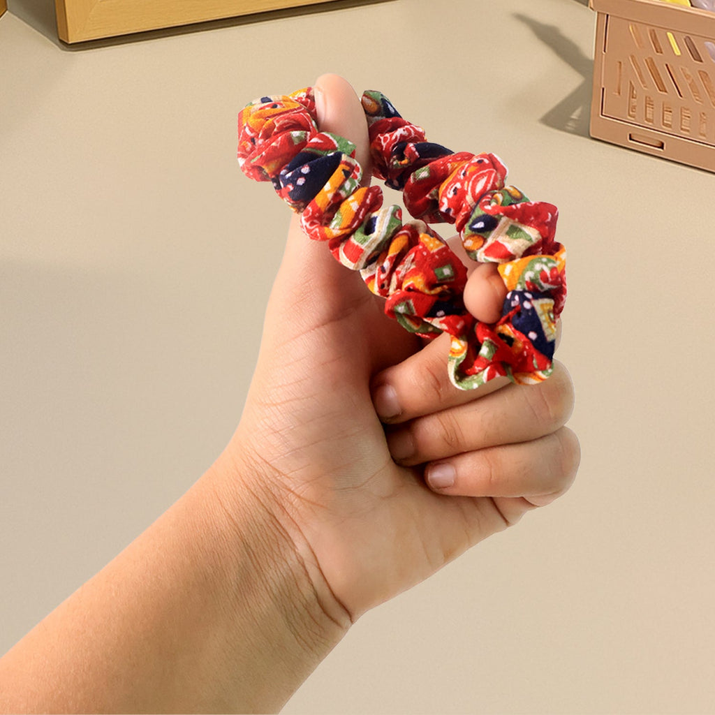 Elevate your hairstyling with this premium set of 12 printed fabric hair scrunchies. Designed with vibrant multicolor prints, these scrunchies not only secure your hair but also add a fashionable flair to your look. The soft fabric combined with stretchable elastic ensures a comfortable grip without causing hair breakage or tangling. Perfect for casual outings, parties, office, or festive wear, these scrunchies suit all hair types and make an essential addition to every girl’s accessory collection.