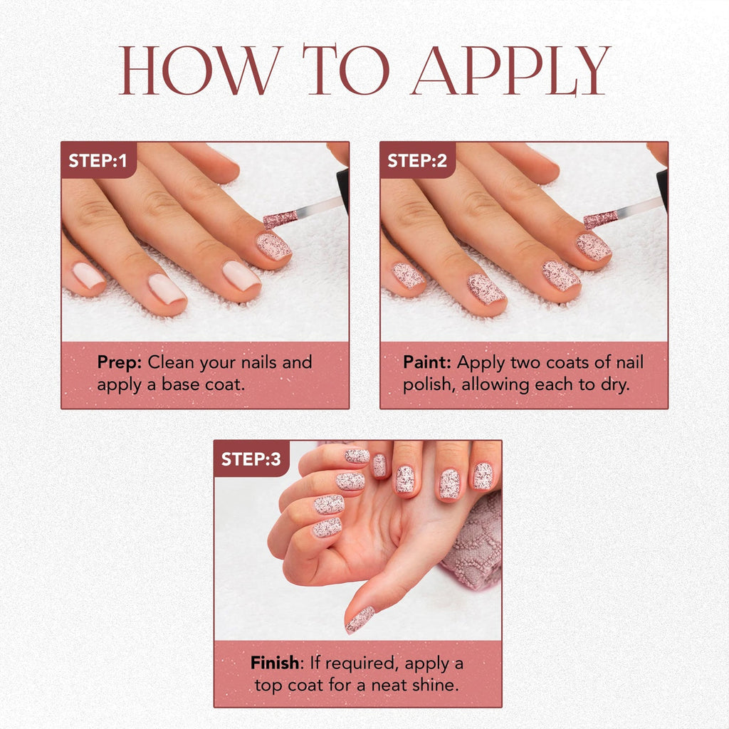 Glitter Nail Paint with a sparkling, glamorous finish.