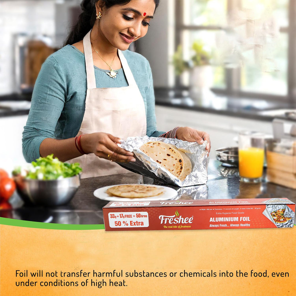 Freshee Premium Aluminium Foil — Twin Pack 2 Pc (Net 50 g each) — Food-Grade, Heavy-Duty Household & Kitchen Foil for Baking, Grilling, Wrapping & Storage