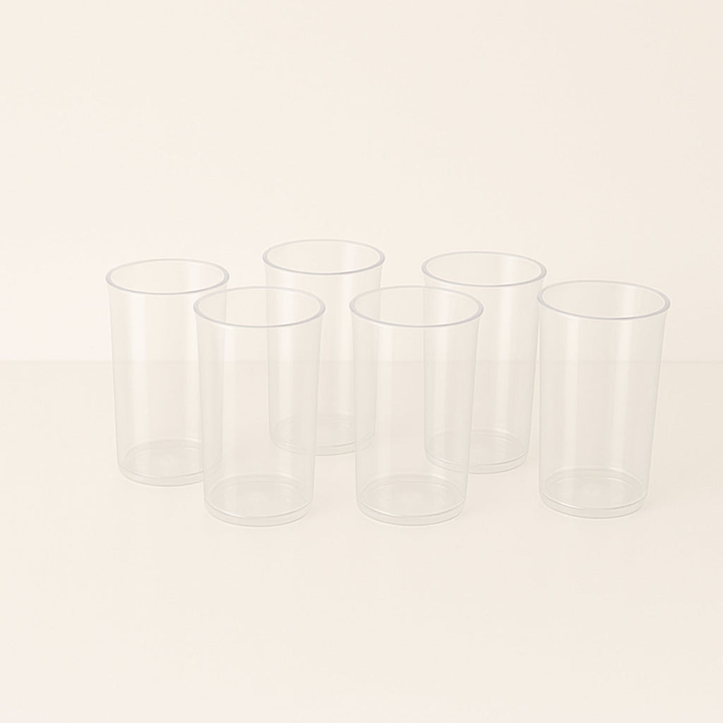 The Supermom Martini Clear Glass Set is a versatile and elegant drinkware collection designed for everyday use as well as special occasions. This set of 6 transparent 300 ml glasses offers a simple yet stylish cylindrical design, making it perfect for serving water, juice, cocktails, mocktails, cold coffee, lassi, or other refreshing beverages. Crafted from high-quality, food-grade, unbreakable plastic, these glasses combine the clarity of glass with the durability of plastic. Lightweight, reusable, and easy to clean, they are an excellent choice for homes, cafes, restaurants, and events.
