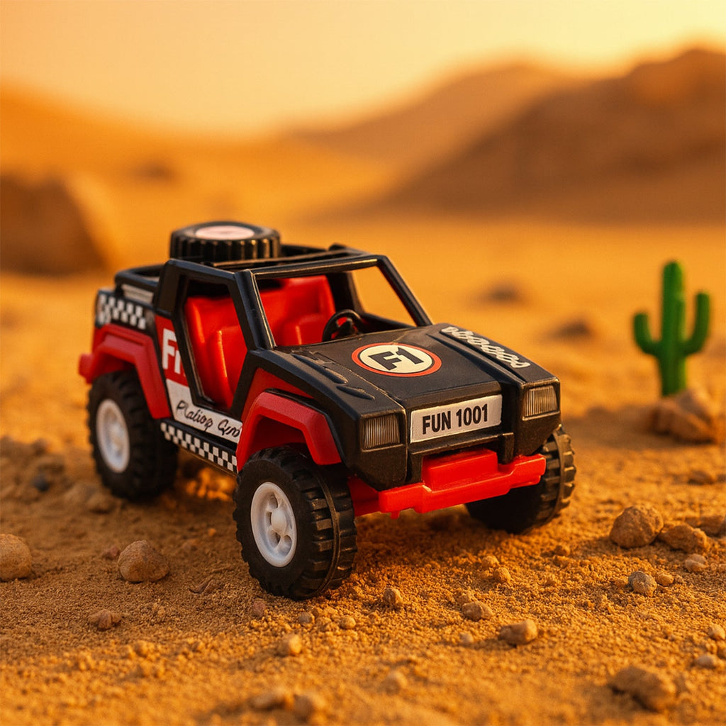 Funwoods racing jeep toy , free-wheel toy car , push and go vehicle , kids jeep toy , sturdy wide-tyre toy , smooth rolling toy , textured grip wheels , open-cabin jeep , durable plastic toy , pretend play jeep , no battery toy car , collectible toy jeep , mini off-road vehicle