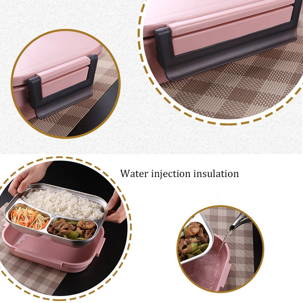 - Built to last reliable, food grade lunch boxes that features 3 compartments for your healthy meal plan the compartments are not leakproof). Made of high quality Stainless Steel interior, with food grade PP outer box, durable for multiple time uses.