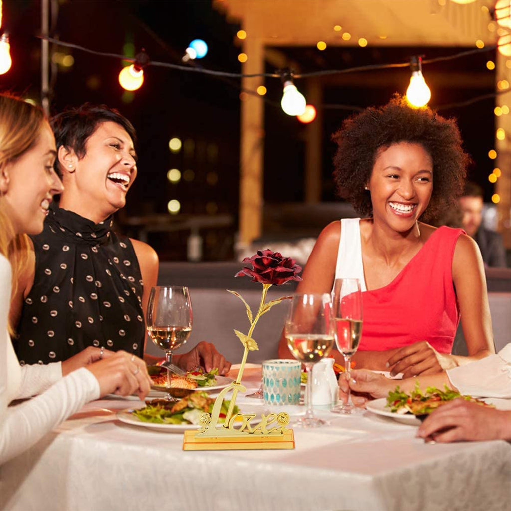 • 24k Gold Rose: The flowers and leaves are made of gold foil, it is lightweight but gorgeous, the flower stems are made of polyethylene and the LOVE stand is made of plastic. All items are packaged in a gift box with a gift bag.